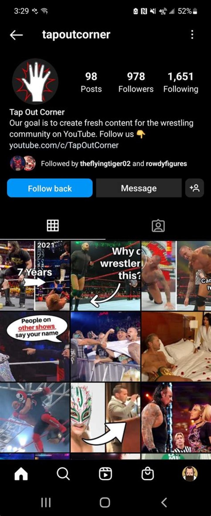 Tap Out Corner is an American YouTuber who is best-known for uploading WWE videos on his channel, Tap Out Corner. Tap Out Corner started the channel on July 16, 2015. Since then, he has earned more than 454k subscribers. Also, his channel has garnered a total of more than 266 million views as well. Besides YouTube, he has lots of fan followings on his other social media platforms.